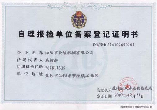 自理報檢單位備案登記證明書